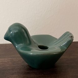 Svart ljusstake formad som en fågel. Ljusstaken är märkt Gabriel undertill.