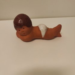 Charmig keramikflicka i retrostil. Perfekt som dekoration i hemmet eller trädgården. Flickan har ett hål i famnen, vilket kan användas för att placera en liten växt eller ljus.