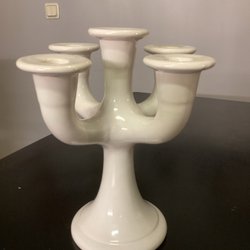 Vit ljusstake från GULDKROKEN. Ljusstake i fint skick utan skador förutom att lacken har blivit något krackelerad under åren. Den verkar inte vara mycket använd men man ser spår från stearin i två av ljushållarna