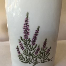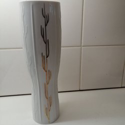 En söt liten vas från Hackefors med blommönster och guldkant. 14 cm hög.