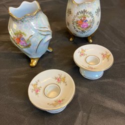 Blå/vit vas är märkt Royal Porzellan Bavaria KPM Germany Handarbeit.