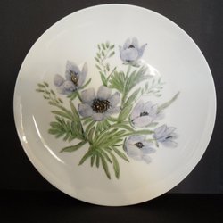 En vas 17 cm hög och sex stycken assietter 17 cm i diameter, från Seltmann Weiden, Tyskland. Inga nagg eller sprickor förekommer.