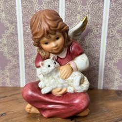 Söt ängel i keramik med detaljer i guld. Märkt undertill med nr och en stämpel.