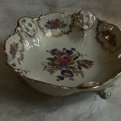 Konfektskål från Rosenthal, märkt Elfenbein Kronach-Germany Moliere. Dekor med blommor och gulddetaljer.