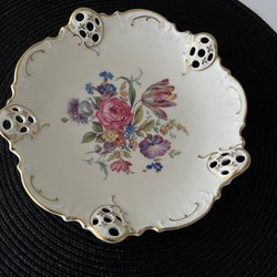 En vacker konfektskål från Rosenthal. Den har ett blommigt motiv och guldfärgade detaljer.