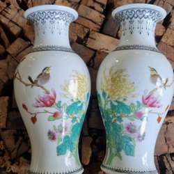 Paret Österikiska vaser i porslin med hjortmotiv. Enl.bilder.