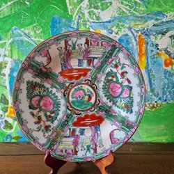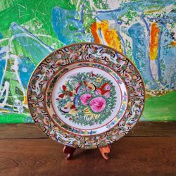 Japansk kakburk från första halvan av 1900-talet i Satsuma-stil där dekoren är målad utanför glasyren. Fint skick, inga skador, nagg eller sprickor. Ca 14 cm hög inklusive lock, bredd mellan handtag 14,5 cm, öppningen är ca 12*12 cm.