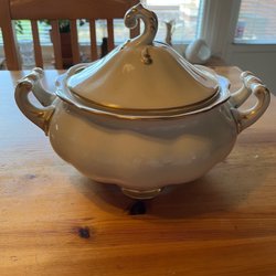 Pirkenhammer Avignon Czechoslovakia Koppar med Fat 2st Porslin Stämplad