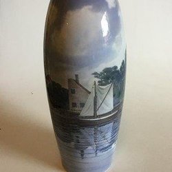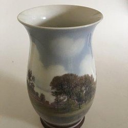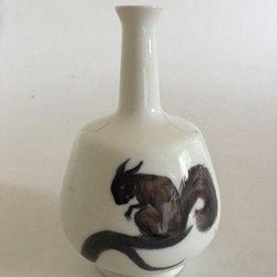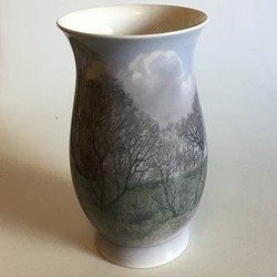 Aluminia Unika Vase af Kai Lange med motiv af Fugl Stær