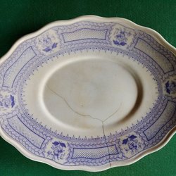 Ett fat med rombisk form och ljusgrönt spräckligt.