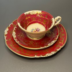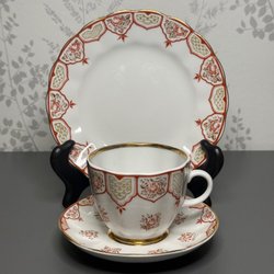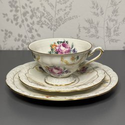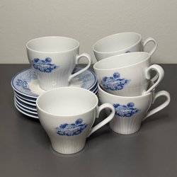 Originaletikett sitter kvar på koppen och botten är tydligt signerad. Ett vackert vintagefynd som passar lika bra i vitrinskåpet som till kaffet på altanen.