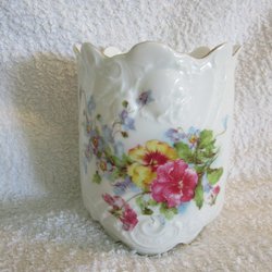 En söt äldre vas med änglar och gulddetaljer. Höjd 20 cm. Från GDR. Litet nagg i vasens överkant enligt bild.