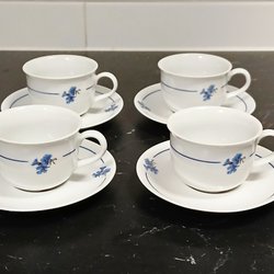 Tre kaffekoppar med fat från Zoegas