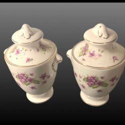Föremålet på bilden är en porslinsvas från KPM Krister, troligen tillverkad efter 1950. Den är vit med ett blommönster och har gulddetaljer på locket och kanten.