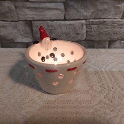 Mycket dekorativ keramik skål med handtag. Vintage