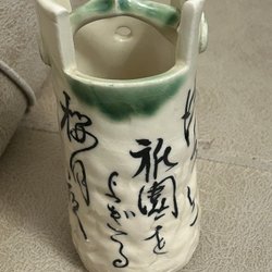 Gul keramik vase. Vasen er 17 cm høj og har en diameter på 6 cm i toppen. Vasen er mærket med 318172 i bunden.