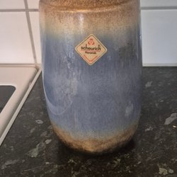 keramik vas i fint skick . höjd 20 cm . diameter öppning 6 cm . diameter mitt på ca 12 cm .