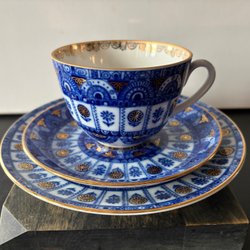 Kaffeservis från Lomonosov med det klassiska Kobolt Nät mönstret. Innehåller tekanna, mjölkkanna, assietter, tefat och koppar. 6 personer. Titta gärna mina övriga auktion