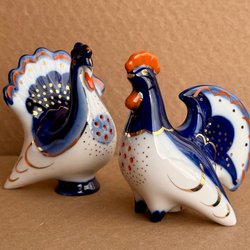 Ett salt- och pepparkar med blått blommönster.