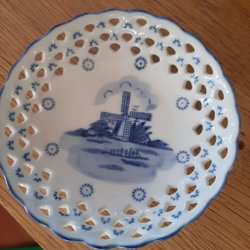En söt liten kopp med tillhörande fat. Koppen är dekorerad med en fågel. På fatet är guldkanten lite sliten.