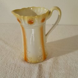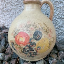 Vintage En fin kanna i keramik med dekorativt mönster. ölmugg