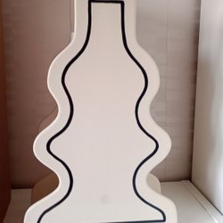 Vas i glaserat stengods med handmålade svarta linjer för ett tredimensionellt uttryck.