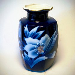 Föremålet som visas är en vas av Satsuma-keramik. Denna keramik är en berömd japansk exportvara, känd för sin detaljerade handgjorda finish och krämiga, spruckna glasyr. Satsuma-keramik (Satsuma-yaki på japanska) kommer ursprungligen från Satsuma-provinsen i södra Kyushu, Japan. Den kännetecknas av invecklade, polykroma emalj- och guldöverglasyrmönster. Autentiska föremål är vanligtvis märkta med japanska tecken och har inga engelska inskriptioner. Denna vas har ett rött märke på botten, vilket är karakteristiskt för Satsuma-keramik.