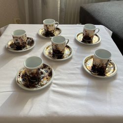 Sæt med kaffekopper og underkopper.