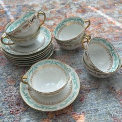 Sæt med kaffekopper og underkopper.