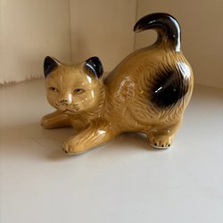 Den här stengodsfiguren föreställer en katt designad av Joseph Simon för den danska keramikfabriken Søholm på Bornholm.