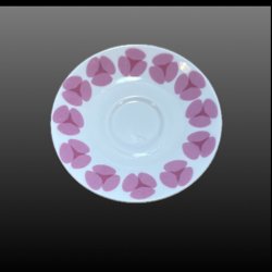 En tallrik från Thomas Germany med ett mönster i rosa och lila nyanser.