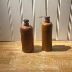 Två stycken keramikflaskor från Bols. Den ena flaskan är en Z.O. Genever och den andra är en Zeer Oude Genever. Två stora fast olika storlekar. Från olika årgångar