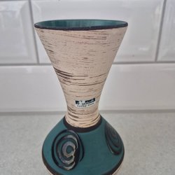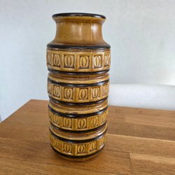 Scheurich Keramik vas. Finns i blå, beige och bruna toner. Har en svartbrun kant upptill. Märkt på undersidan.