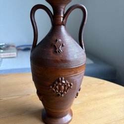 En vacker brun keramikvas med gulddetaljer. Möjligen från Tyskland.