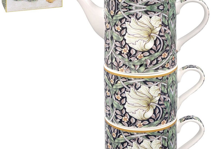 Snyggt tea for two-set i William Morris populära mönster Pimpernel Midnight. " muggar!