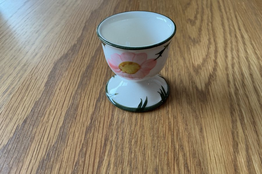 Äggkopp med ett charmigt blommönster i rosa och grönt. Perfekt för frukostbordet eller som en fin inredningsdetalj.