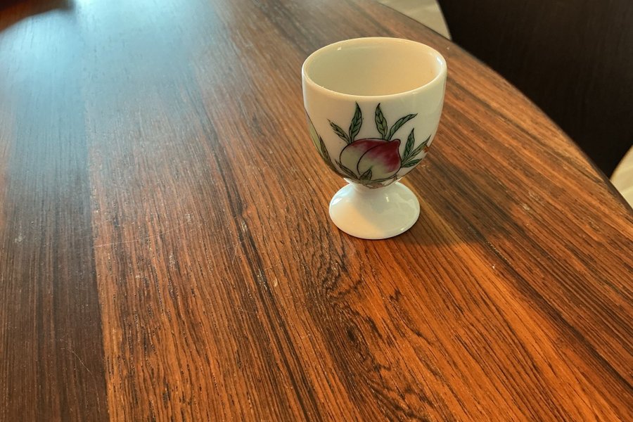 Äggkopp med ett detaljerat persikomönster. Denna äggkopp är ett charmigt tillskott till frukostbordet.