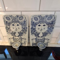 To keramik vaser fra Nymölle, Flora serien. Designet af Bjørn Wiinblad. Med et flot blå mønster. Den ene er Ø 6 H 12 den anden er Ø 6,5 H 10