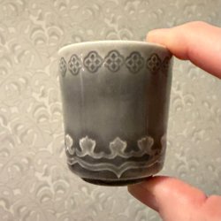 Ett par äggkoppar från Royal Tettau. Den ena äggkoppen är från 1984 och den andra från 1987. Båda har ett blått mönster.
