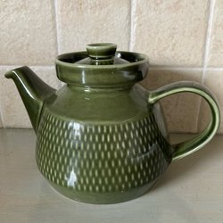 Tekanna från Stavangerflint Norway. Grön med mönster.