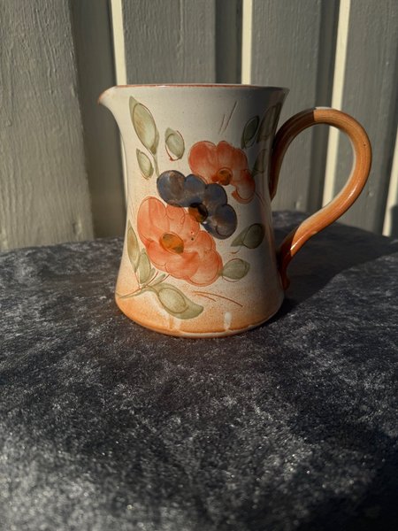 La Potarie terrakottakanna med handmålad blommotiv, jättefint skick!