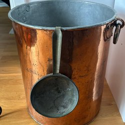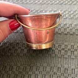 En vacker kopparhink med handtag. Perfekt för dekoration eller förvaring.