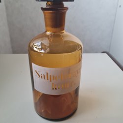 1 st ljusstake, 1 st bordslampa, 1 st kruka i mässing, 1 st krutmått.