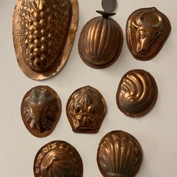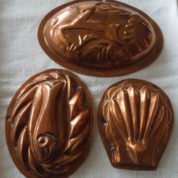 Två kopparformar med motiv av äpple och vindruvor.