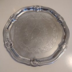 Antik Oval kopparbricka med hamrad yta och flätad kant.