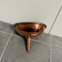 Tratt i koppar med ring för upphängning 19x13.5 cm höjd med pip 12 cm brukskick