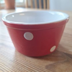 Rund blank kopparbricka med hamrad yta och räfflad kant. Någon liten tunn repa på ovansidan men syns knappt.
