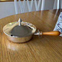 liten karott med lock i stämplad Prima nysilver, diameter 15 cm, höjd utan lock 5 cm