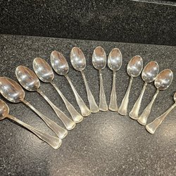 12 st Sked 21 cm ,                                                        12 st Gaffel 21 cm ,                                                            12 st Kniv 24,5 cm                                                                 Behöver putsas