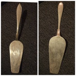 Vackert mönstrad tårtspade. Troligtvis nysilver. Stämpel saknas.